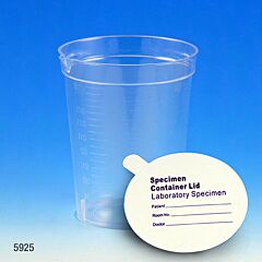 Specimen Container, 6.5oz, Paper Lid Included in Each Pack, Pour Spout, PP, Graduated, 25/Pack, 20 Packs/Unit Item# 5924Please log in to view specific pricing.