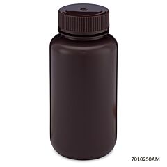 Bottle, Wide Mouth, HDPE Bottle, Attached PP Screw Cap, Amber, 250mL, 12/Pack Item# 7010250AMPlease log in to view specific pricing.