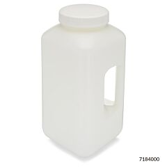 Bottle, Large Wide Mouth with Handle, Square, HDPE Bottle, 100mm PP Screw Cap, 4 Litres (1.0 Gallons) Item# 7184000Please log in to view specific pricing.