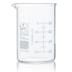 Beaker, Globe Glass, 100mL, Low Form Griffin Style, Dual Graduations, ASTM E960, 12/Box-Item #8010100Please log in to view specific pricing.