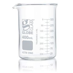 Beaker, Globe Glass, 400mL, Low Form Griffin Style, Dual Graduations, ASTM E960, 12/Box-Item #8010400Please log in to view specific pricing.