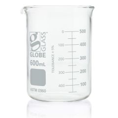 Beaker, Globe Glass, 600mL, Low Form Griffin Style, Dual Graduations, ASTM E960, 6/Box-Item #8010600Please log in to view specific pricing.