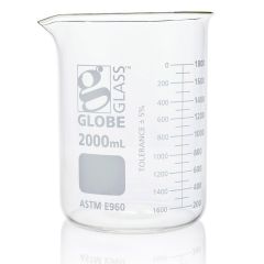 Beaker, Globe Glass, 2000mL, Low Form Griffin Style, Dual Graduations, ASTM E960, 4/Box-Item #8012000Please log in to view specific pricing.